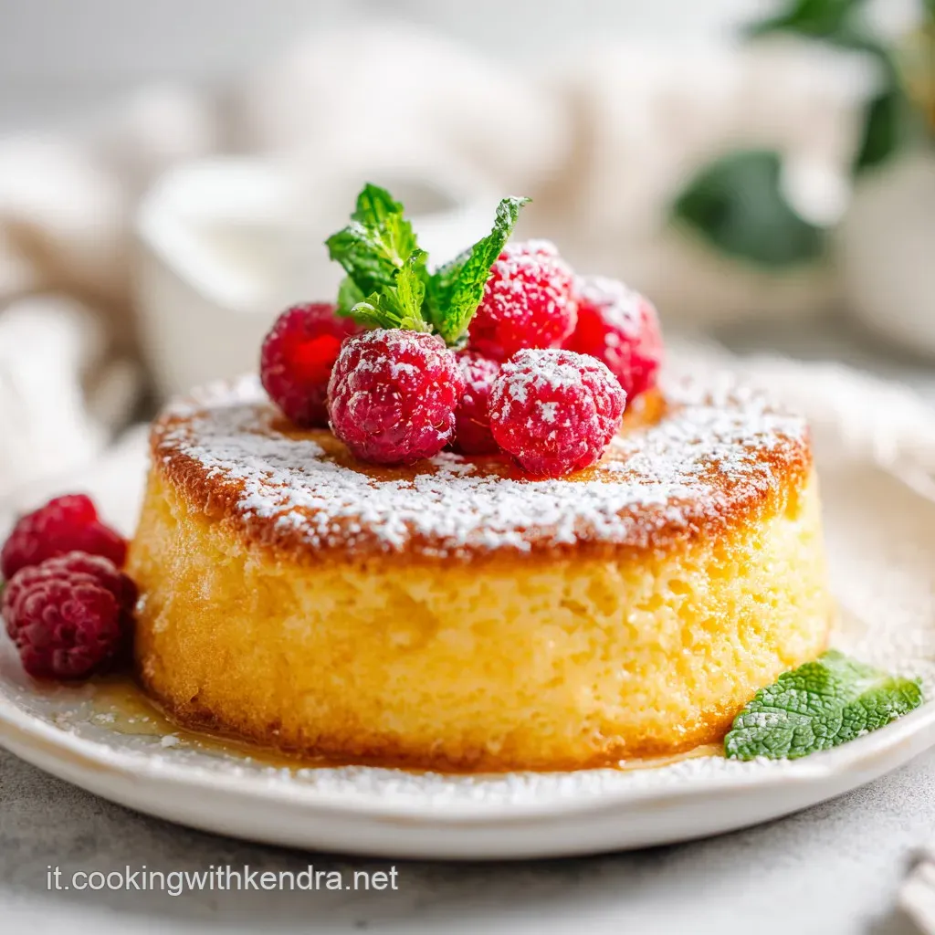 Per servire questo dolce in modo regale, puoi preparare una veloce salsa ai frutti di bosco scaldando dei lamponi surgelati con un cucchiaio di zucchero. La nota acida dei frutti contrasta divinamente con la dolcezza soffice della torta.